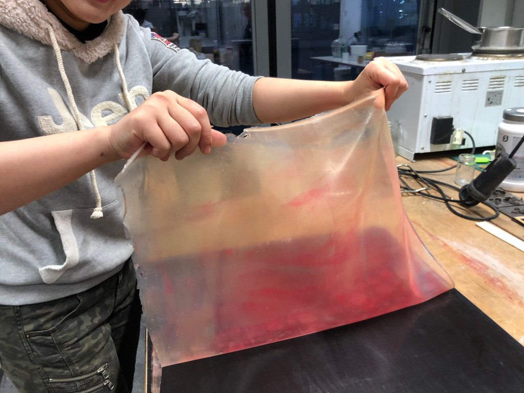 The problem was putting too much color inside of the silicon mix. Which too much color, the silicon became very sticky and oozy. Also, it wasn’t transparent enough to show the LED lamps. Therefore, we had to figure out a right proportion of the silicon mix and the color. As we had to produce Silicon in a shot amount of time, we had to see whether if it is not available for the next day. That’s why we tried our best to make it as accurate as possible.